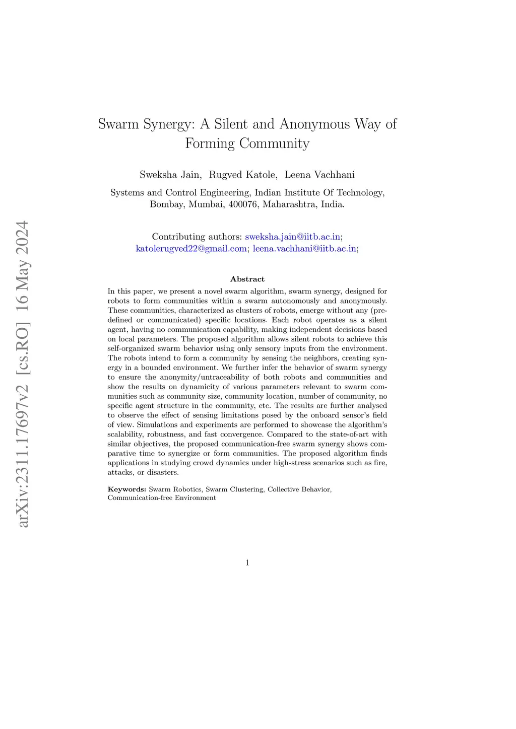 Swarm Self Clustering for Communication denied Environments without Global Positioning