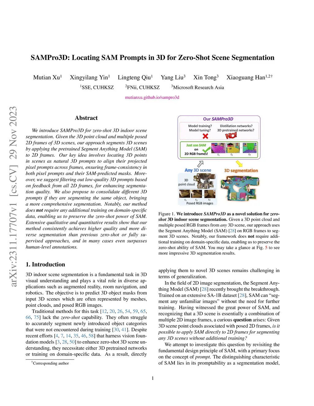 SAMPro3D: Locating SAM Prompts in 3D for Zero-Shot Instance Segmentation