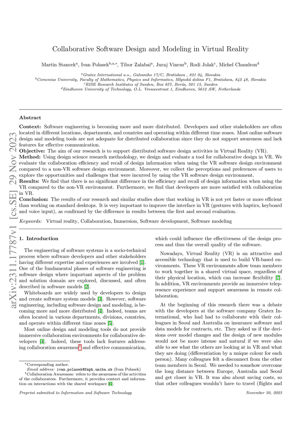 Collaborative software design and modeling in virtual reality