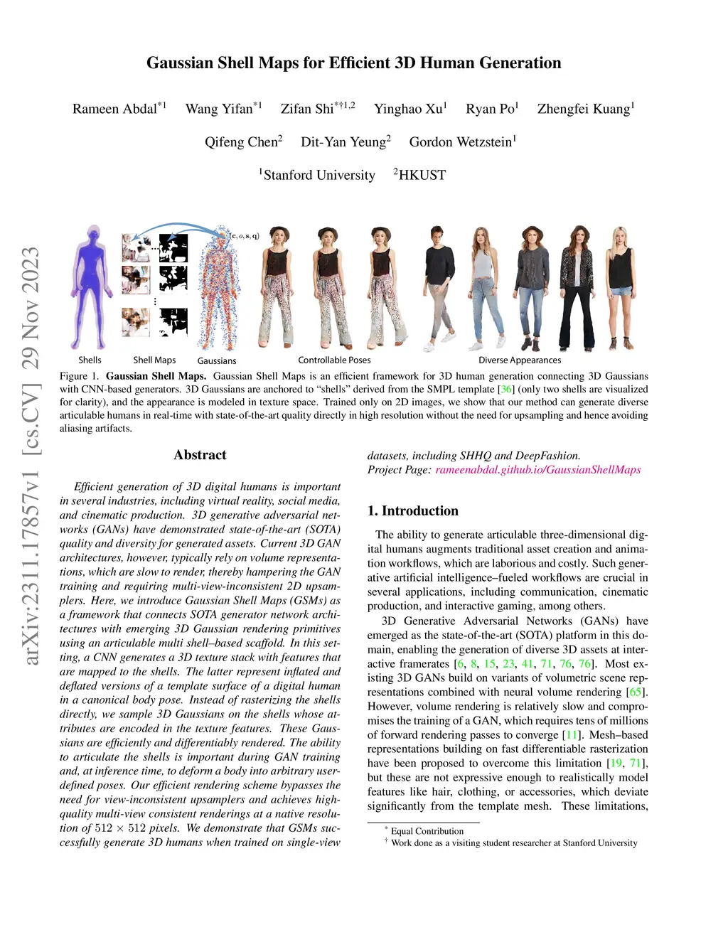 Gaussian Shell Maps for Efficient 3D Human Generation