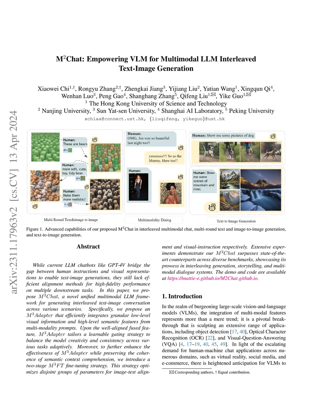 While current LLM chatbots like GPT-4V bridge the gap between human instructions and visual representations to enable text-image generations, they still lack efficient alignment methods for high-fidelity performance on multiple downstream tasks. In this paper, we propose \textbf{}, a novel unified multimodal LLM framework for generating interleaved text-image conversation across various scenarios. Specifically, we propose an that efficiently integrates granular low-level visual information and high-level semantic features from multi-modality prompts. Upon the well-aligned fused feature, tailors a learnable gating strategy to balance the model creativity and consistency across various tasks adaptively. Moreover, to further enhance the effectiveness of while preserving the coherence of semantic context comprehension, we introduce a two-stage fine-tuning strategy. This strategy optimizes disjoint groups of parameters for image-text alignment and visual-instruction respectively. Extensive experiments demonstrate our surpasses state-of-the-art counterparts across diverse benchmarks, showcasing its prowess in interleaving generation, storytelling, and multimodal dialogue systems. The demo and code are available at \red{this https URL}.