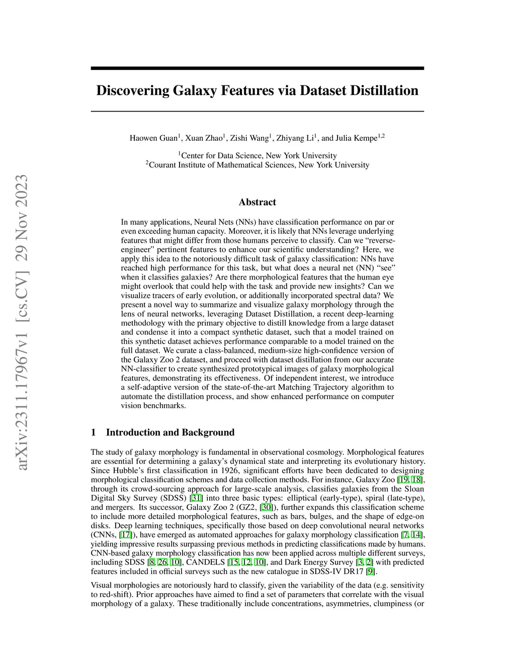In many applications, Neural Nets (NNs) have classification performance on par or even exceeding human capacity. Moreover, it is likely that NNs leverage underlying features that might differ from those humans perceive to classify. Can we "reverse-engineer" pertinent features to enhance our scientific understanding? Here, we apply this idea to the notoriously difficult task of galaxy classification: NNs have reached high performance for this task, but what does a neural net (NN) "see" when it classifies galaxies? Are there morphological features that the human eye might overlook that could help with the task and provide new insights? Can we visualize tracers of early evolution, or additionally incorporated spectral data? We present a novel way to summarize and visualize galaxy morphology through the lens of neural networks, leveraging Dataset Distillation, a recent deep-learning methodology with the primary objective to distill knowledge from a large dataset and condense it into a compact synthetic dataset, such that a model trained on this synthetic dataset achieves performance comparable to a model trained on the full dataset. We curate a class-balanced, medium-size high-confidence version of the Galaxy Zoo 2 dataset, and proceed with dataset distillation from our accurate NN-classifier to create synthesized prototypical images of galaxy morphological features, demonstrating its effectiveness. Of independent interest, we introduce a self-adaptive version of the state-of-the-art Matching Trajectory algorithm to automate the distillation process, and show enhanced performance on computer vision benchmarks.