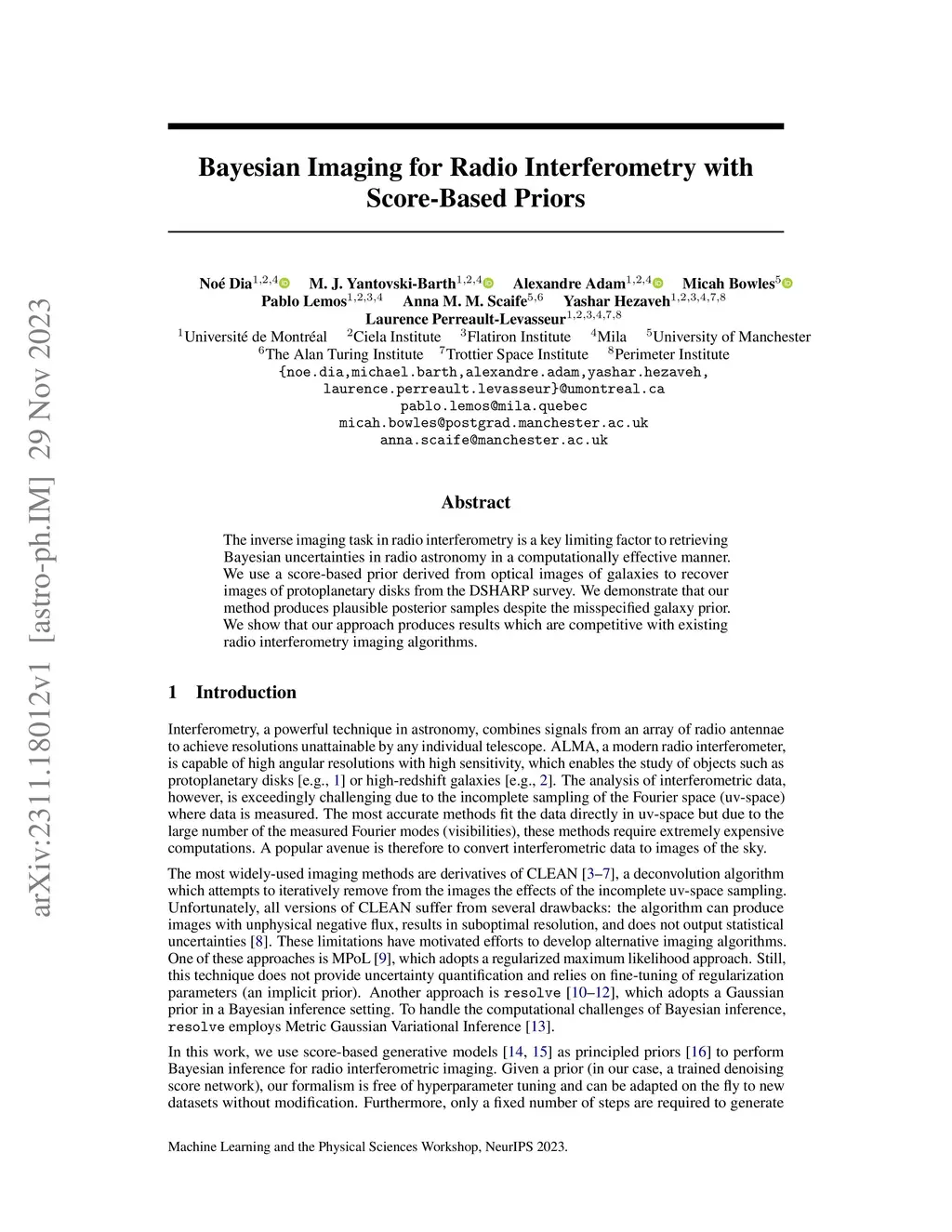 The inverse imaging task in radio interferometry is a key limiting factor to retrieving Bayesian uncertainties in radio astronomy in a computationally effective manner. We use a score-based prior derived from optical images of galaxies to recover images of protoplanetary disks from the DSHARP survey. We demonstrate that our method produces plausible posterior samples despite the misspecified galaxy prior. We show that our approach produces results which are competitive with existing radio interferometry imaging algorithms.