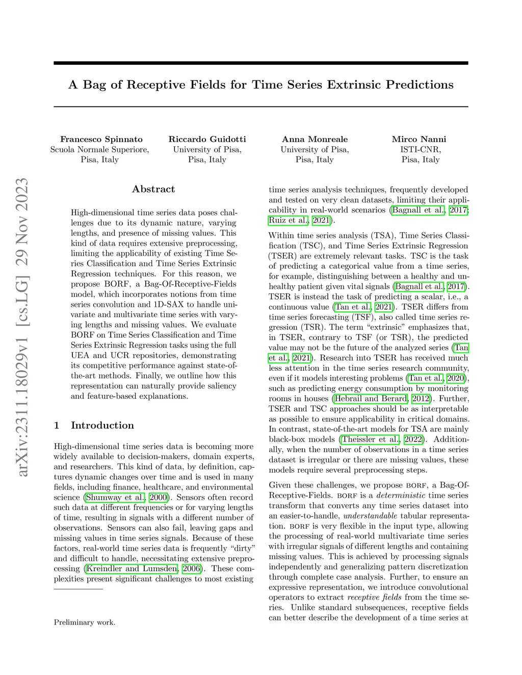 A Bag of Receptive Fields for Time Series Extrinsic Predictions