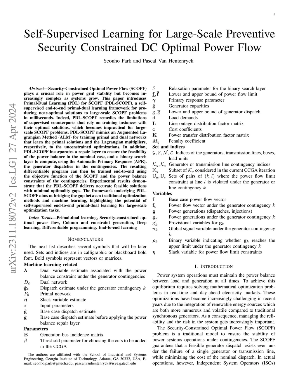 Self-Supervised Learning for Large-Scale Preventive Security Constrained