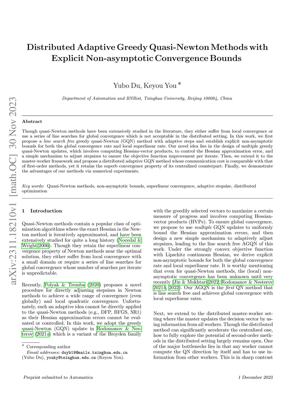 Though quasi-Newton methods have been extensively studied in the literature, they either suffer from local convergence or use a series of line searches for global convergence which is not acceptable in the distributed setting. In this work, we first propose a line search free greedy quasi-Newton (GQN) method with adaptive steps and establish explicit non-asymptotic bounds for both the global convergence rate and local superlinear rate. Our novel idea lies in the design of multiple greedy quasi-Newton updates, which involves computing Hessian-vector products, to control the Hessian approximation error, and a simple mechanism to adjust stepsizes to ensure the objective function improvement per iterate. Then, we extend it to the master-worker framework and propose a distributed adaptive GQN method whose communication cost is comparable with that of first-order methods, yet it retains the superb convergence property of its centralized counterpart. Finally, we demonstrate the advantages of our methods via numerical experiments.