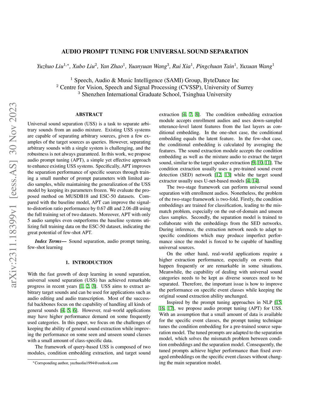 Audio Prompt Tuning for Universal Sound Separation