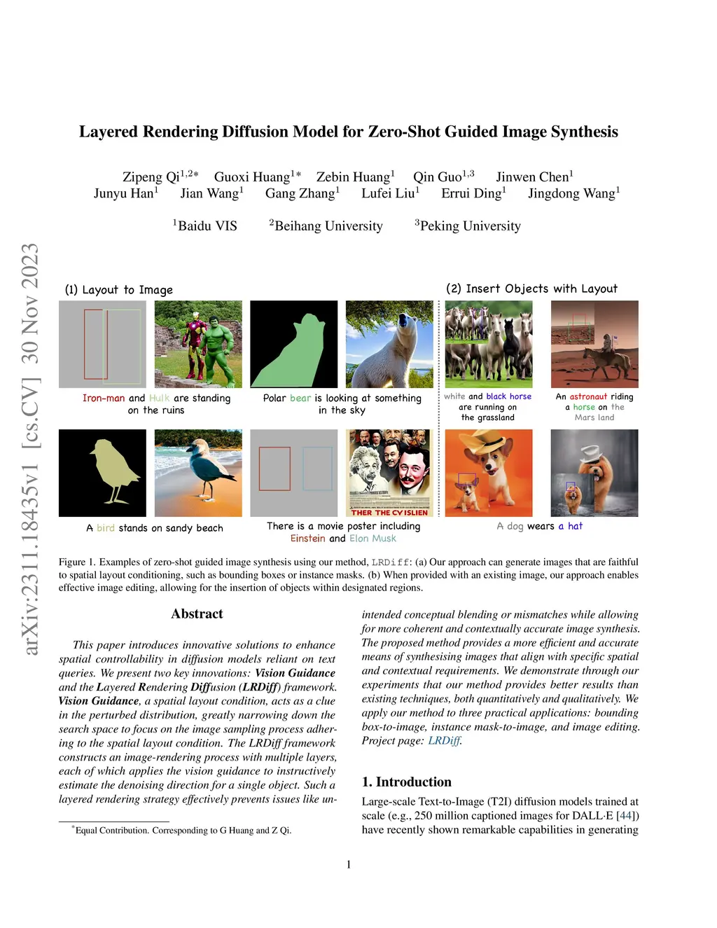 This paper introduces innovative solutions to enhance spatial controllability in diffusion models reliant on text queries. We present two key innovations: Vision Guidance and the Layered Rendering Diffusion (LRDiff) framework. Vision Guidance, a spatial layout condition, acts as a clue in the perturbed distribution, greatly narrowing down the search space, to focus on the image sampling process adhering to the spatial layout condition. The LRDiff framework constructs an image-rendering process with multiple layers, each of which applies the vision guidance to instructively estimate the denoising direction for a single object. Such a layered rendering strategy effectively prevents issues like unintended conceptual blending or mismatches, while allowing for more coherent and contextually accurate image synthesis. The proposed method provides a more efficient and accurate means of synthesising images that align with specific spatial and contextual requirements. We demonstrate through our experiments that our method provides better results than existing techniques both quantitatively and qualitatively. We apply our method to three practical applications: bounding box-to-image, semantic mask-to-image and image editing.