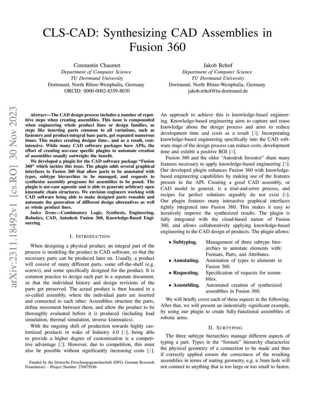 CLS-CAD: Synthesizing CAD Assemblies in Fusion 360