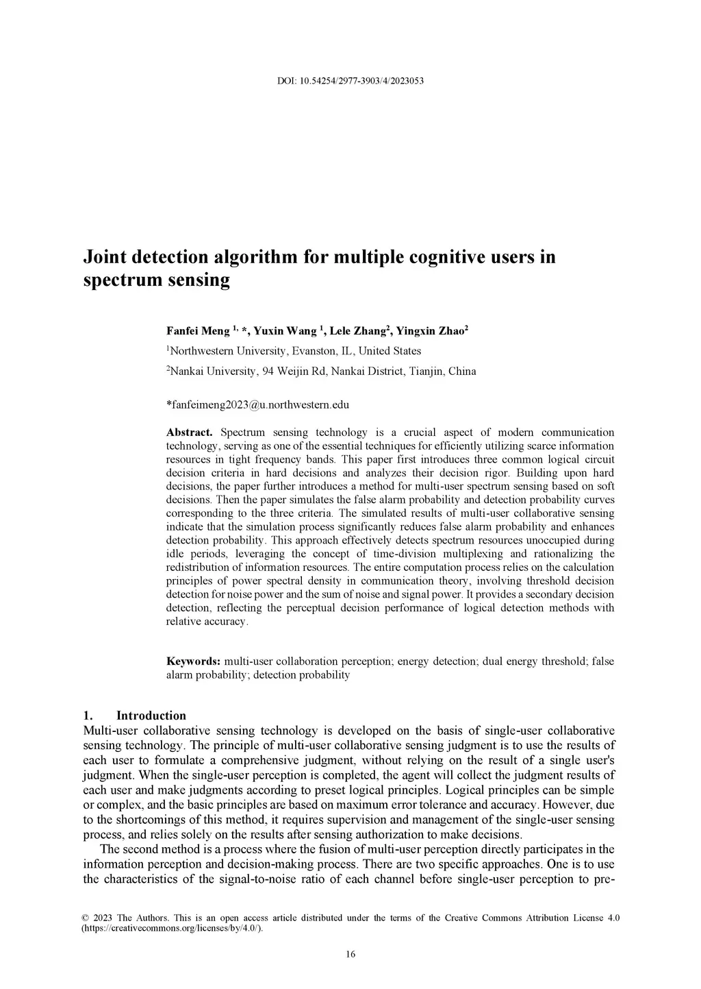 Spectrum sensing technology is a crucial aspect of modern communication technology, serving as one of the essential techniques for efficiently utilizing scarce information resources in tight frequency bands. This paper first introduces three common logical circuit decision criteria in hard decisions and analyzes their decision rigor. Building upon hard decisions, the paper further introduces a method for multi-user spectrum sensing based on soft decisions. Then the paper simulates the false alarm probability and detection probability curves corresponding to the three criteria. The simulated results of multi-user collaborative sensing indicate that the simulation process significantly reduces false alarm probability and enhances detection probability. This approach effectively detects spectrum resources unoccupied during idle periods, leveraging the concept of time-division multiplexing and rationalizing the redistribution of information resources. The entire computation process relies on the calculation principles of power spectral density in communication theory, involving threshold decision detection for noise power and the sum of noise and signal power. It provides a secondary decision detection, reflecting the perceptual decision performance of logical detection methods with relative accuracy.
