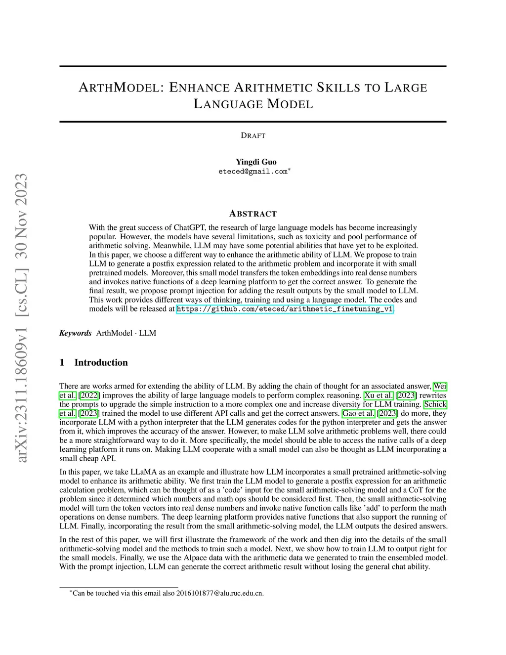 ArthModel: Enhance Arithmetic Skills to Large Language Model
