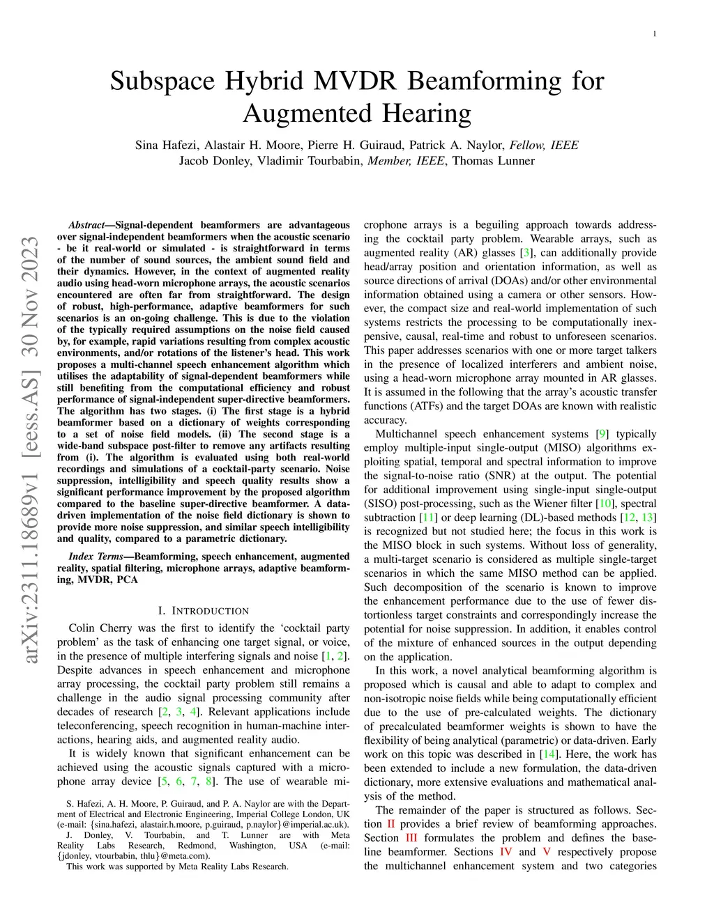 Subspace Hybrid MVDR Beamforming for Augmented Hearing