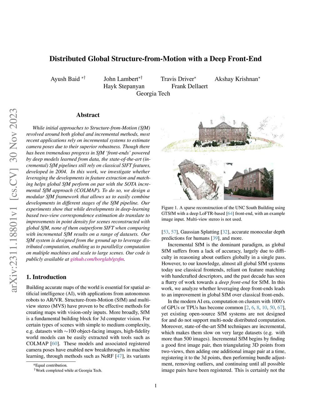 Distributed Global Structure-from-Motion with a Deep Front-End
