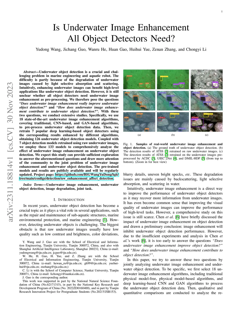Underwater object detection is a crucial and challenging problem in marine engineering and aquatic robot. The difficulty is partly because of the degradation of underwater images caused by light selective absorption and scattering. Intuitively, enhancing underwater images can benefit high-level applications like underwater object detection. However, it is still unclear whether all object detectors need underwater image enhancement as pre-processing. We therefore pose the questions "Does underwater image enhancement really improve underwater object detection?" and "How does underwater image enhancement contribute to underwater object detection?". With these two questions, we conduct extensive studies. Specifically, we use 18 state-of-the-art underwater image enhancement algorithms, covering traditional, CNN-based, and GAN-based algorithms, to pre-process underwater object detection data. Then, we retrain 7 popular deep learning-based object detectors using the corresponding results enhanced by different algorithms, obtaining 126 underwater object detection models. Coupled with 7 object detection models retrained using raw underwater images, we employ these 133 models to comprehensively analyze the effect of underwater image enhancement on underwater object detection. We expect this study can provide sufficient exploration to answer the aforementioned questions and draw more attention of the community to the joint problem of underwater image enhancement and underwater object detection. The pre-trained models and results are publicly available and will be regularly updated. Project page: https://github.com/BIGWangYuDong/lqit/tree/main/configs/detection/uw_enhancement_affect_detection.