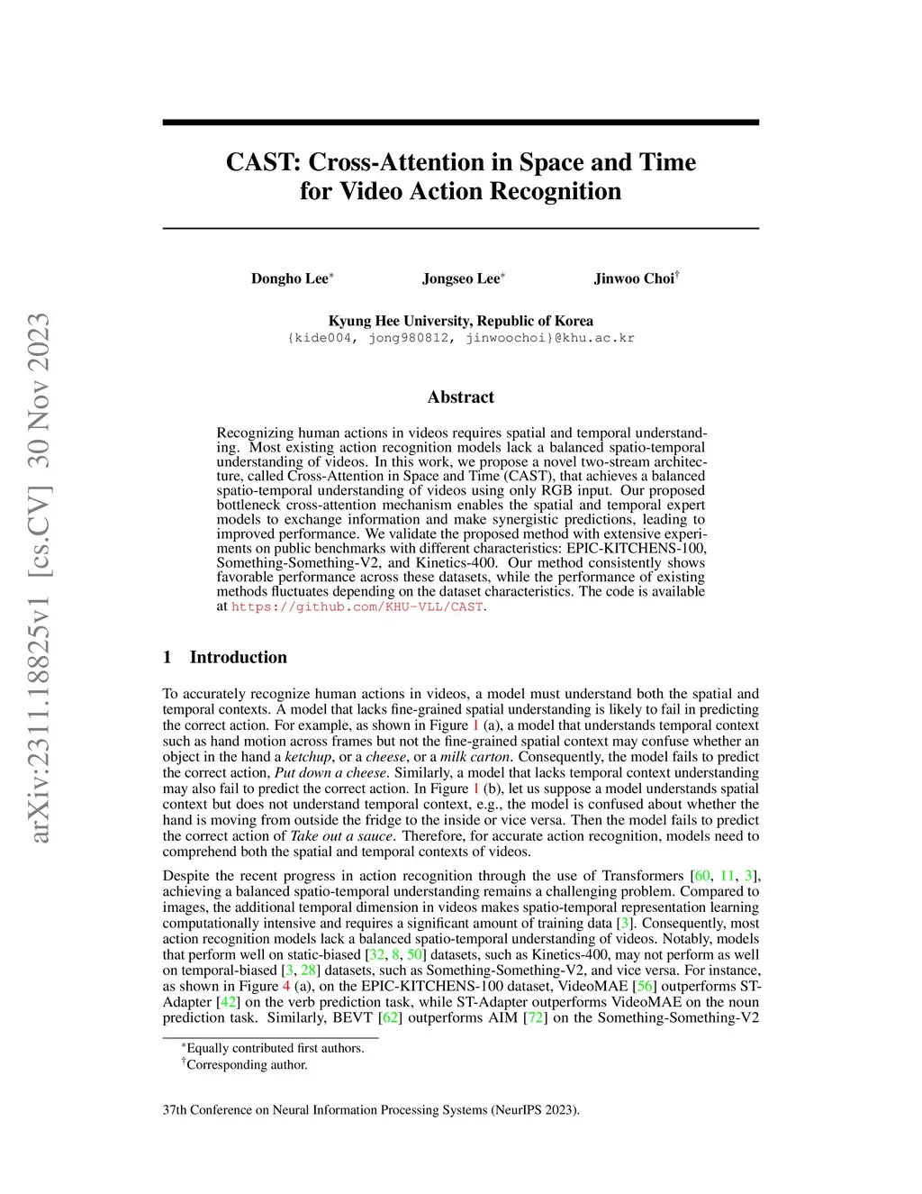 CAST: Cross-Attention in Space and Time for Video Action Recognition
