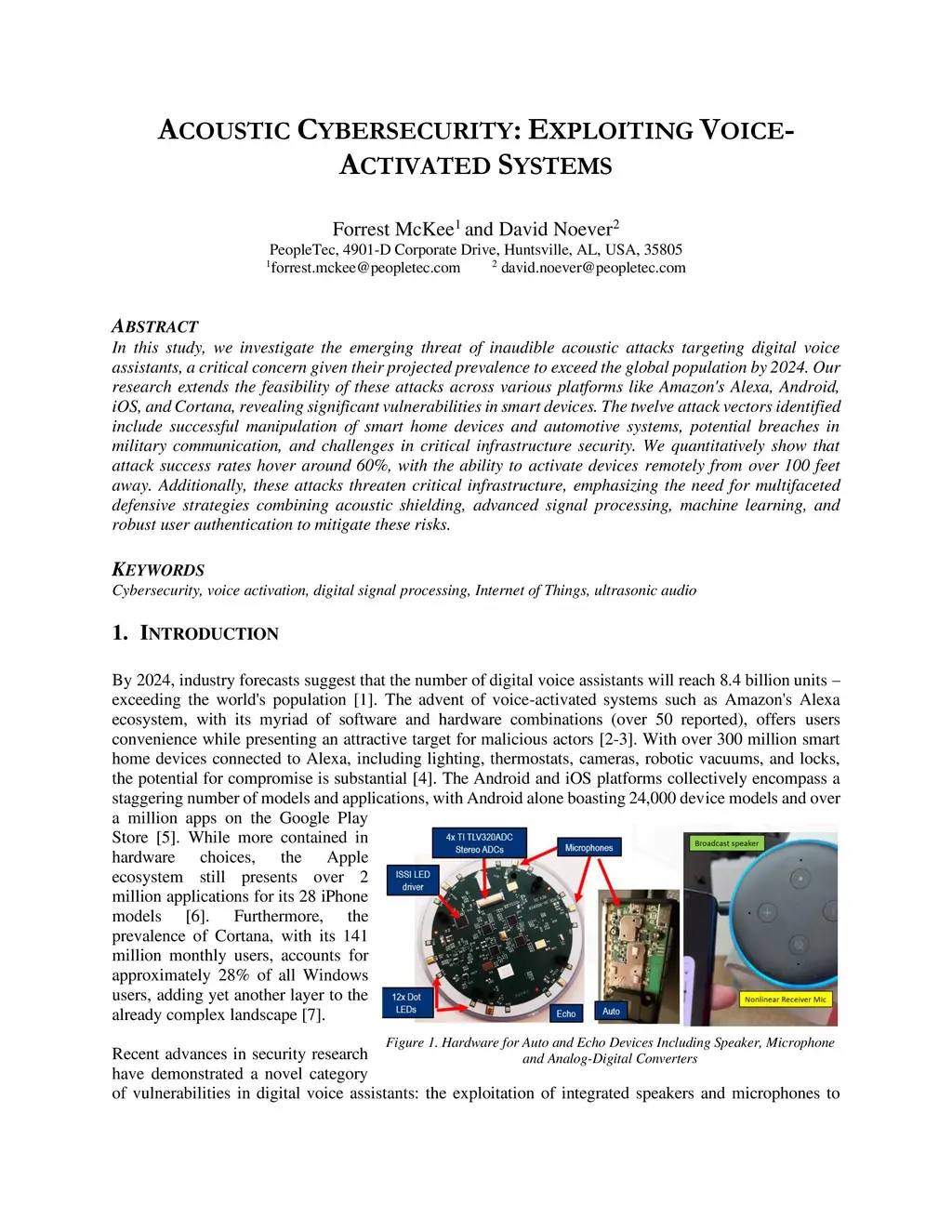 In this study, we investigate the emerging threat of inaudible acoustic attacks targeting digital voice assistants, a critical concern given their projected prevalence to exceed the global population by 2024. Our research extends the feasibility of these attacks across various platforms like Amazon's Alexa, Android, iOS, and Cortana, revealing significant vulnerabilities in smart devices. The twelve attack vectors identified include successful manipulation of smart home devices and automotive systems, potential breaches in military communication, and challenges in critical infrastructure security. We quantitatively show that attack success rates hover around 60%, with the ability to activate devices remotely from over 100 feet away. Additionally, these attacks threaten critical infrastructure, emphasizing the need for multifaceted defensive strategies combining acoustic shielding, advanced signal processing, machine learning, and robust user authentication to mitigate these risks.