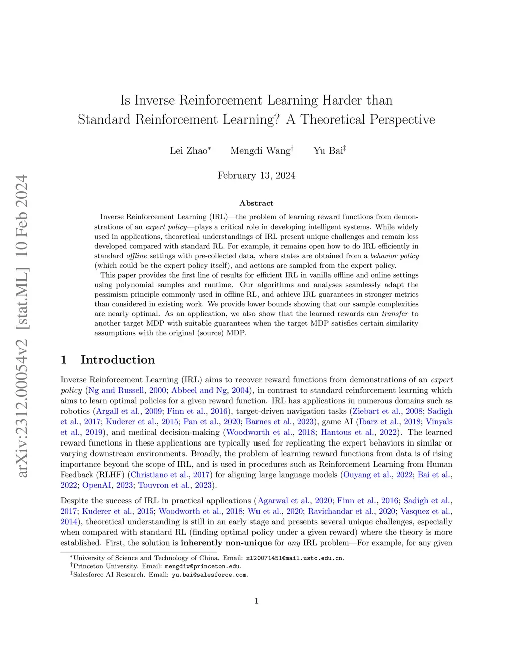 Is Inverse Reinforcement Learning Harder than Standard Reinforcement