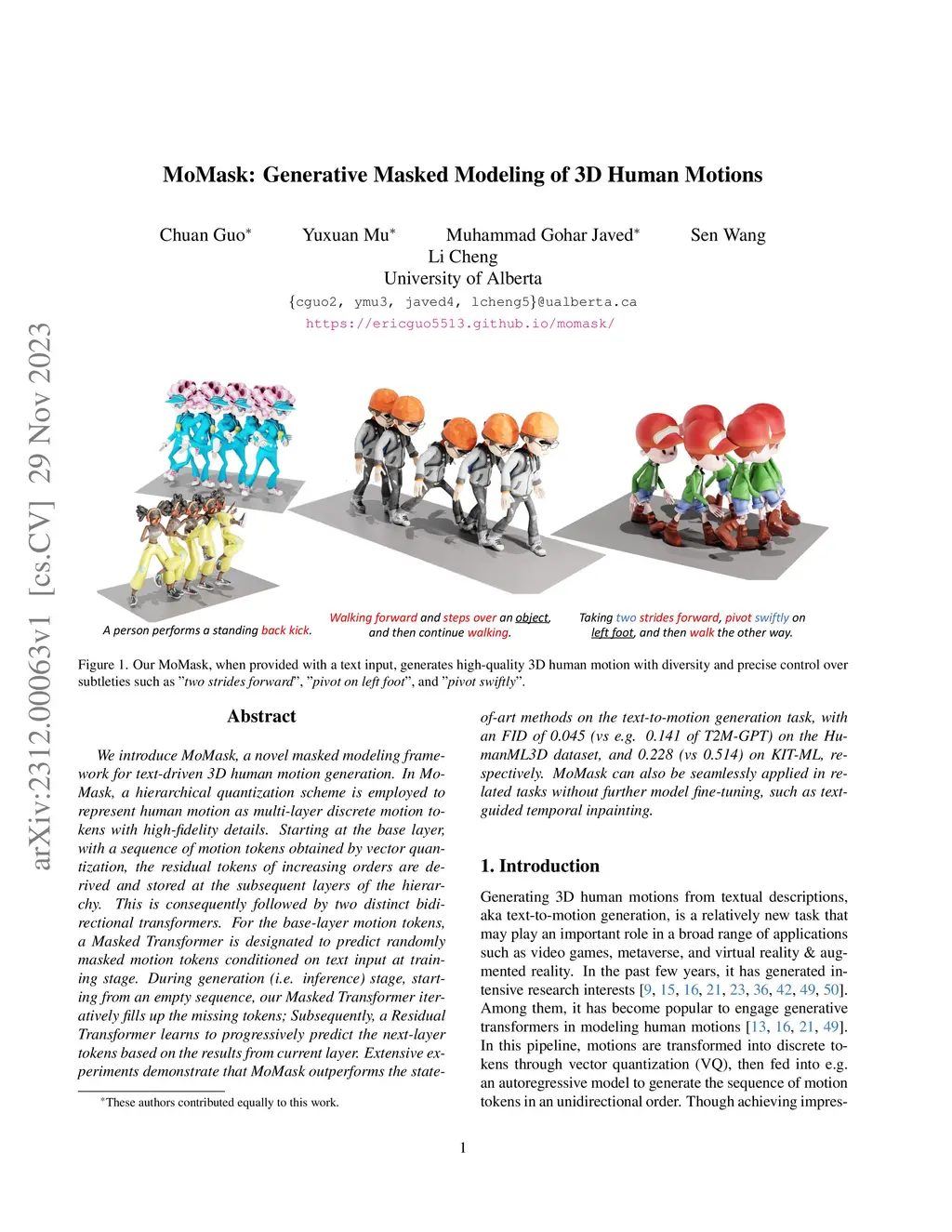 MoMask: Generative Masked Modeling of 3D Human Motions