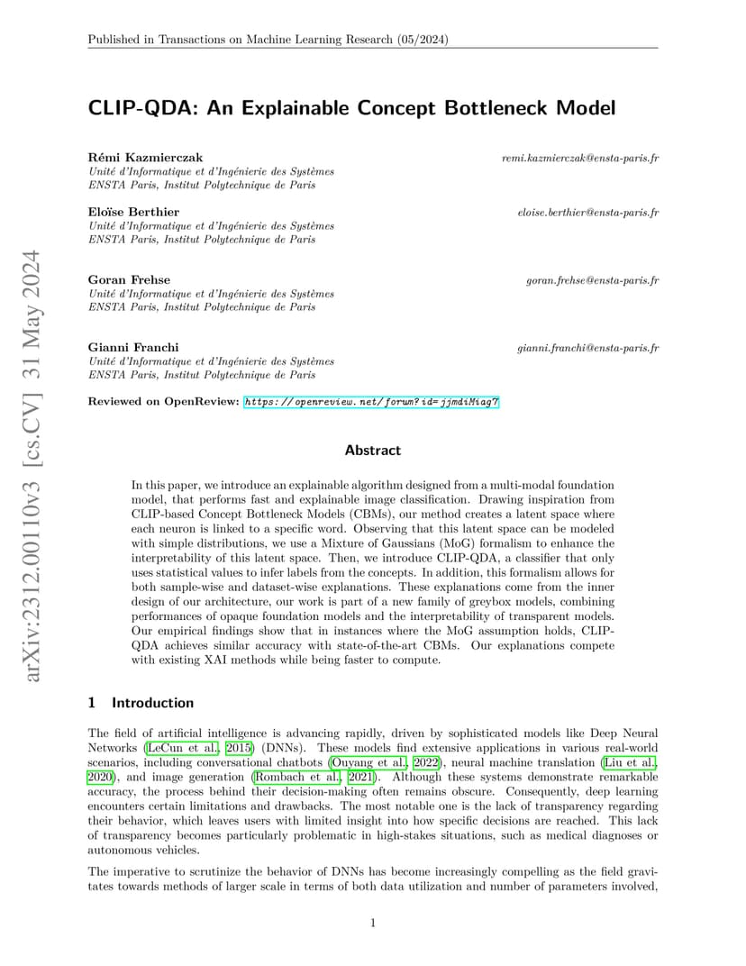 CLIP-QDA: An Explainable Concept Bottleneck Model