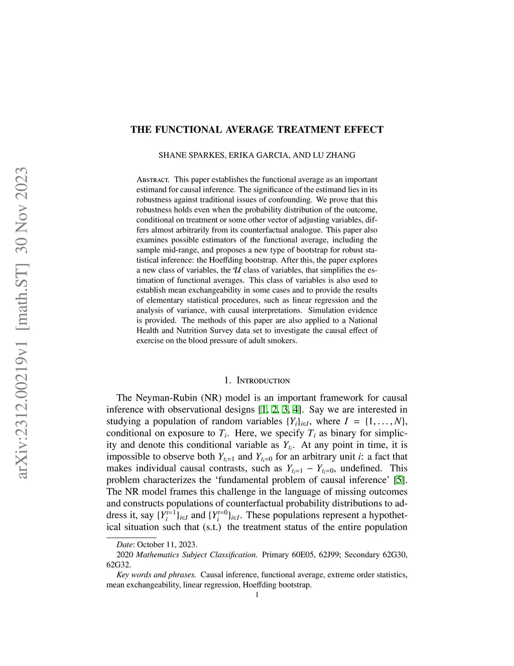 This paper establishes the functional average as an important estimand for causal inference. The significance of the estimand lies in its robustness against traditional issues of confounding. We prove that this robustness holds even when the probability distribution of the outcome, conditional on treatment or some other vector of adjusting variables, differs almost arbitrarily from its counterfactual analogue. This paper also examines possible estimators of the functional average, including the sample mid-range, and proposes a new type of bootstrap for robust statistical inference: the Hoeffding bootstrap. After this, the paper explores a new class of variables, the class of variables, that simplifies the estimation of functional averages. This class of variables is also used to establish mean exchangeability in some cases and to provide the results of elementary statistical procedures, such as linear regression and the analysis of variance, with causal interpretations. Simulation evidence is provided. The methods of this paper are also applied to a National Health and Nutrition Survey data set to investigate the causal effect of exercise on the blood pressure of adult smokers.