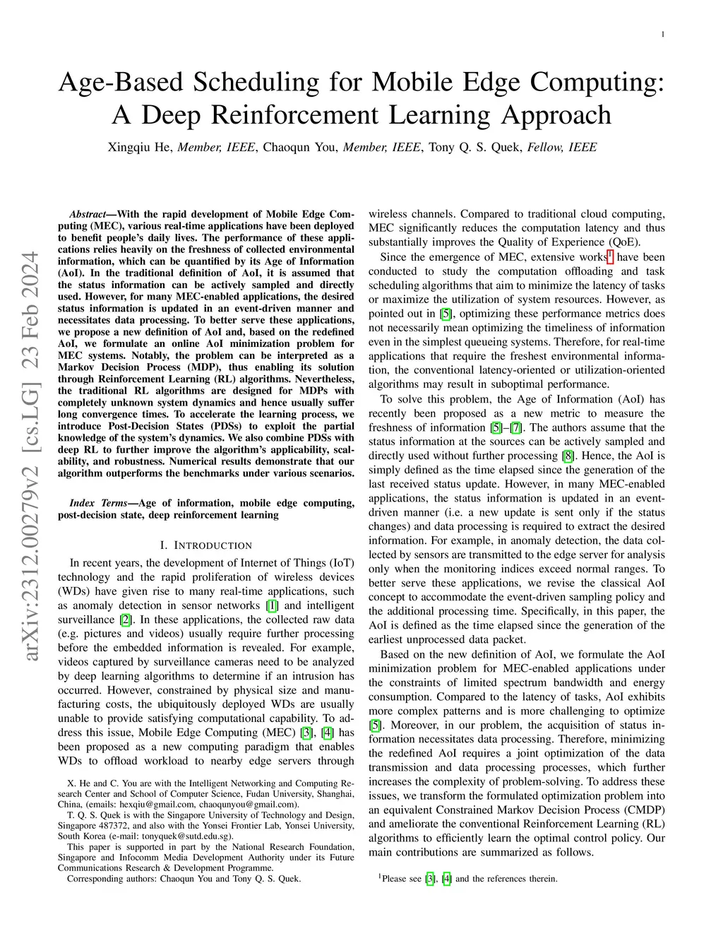 Age-Based Scheduling for Mobile Edge Computing: A Deep Reinforcement