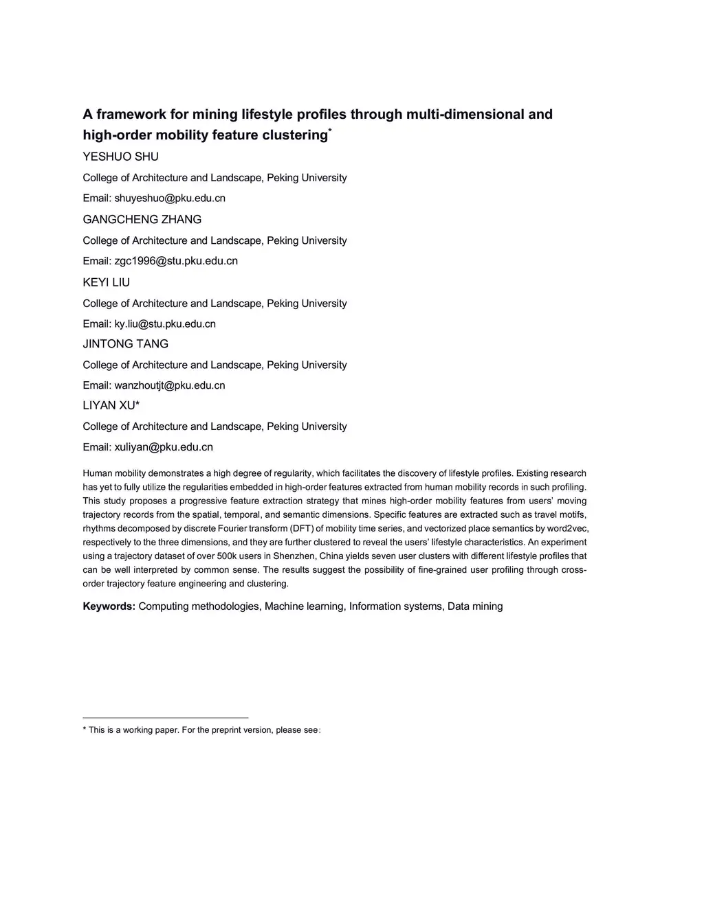 high-order mobility feature clustering