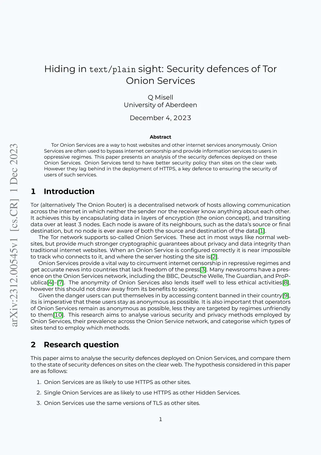 Hiding in text/plain sight: Security defences of Tor Onion Services