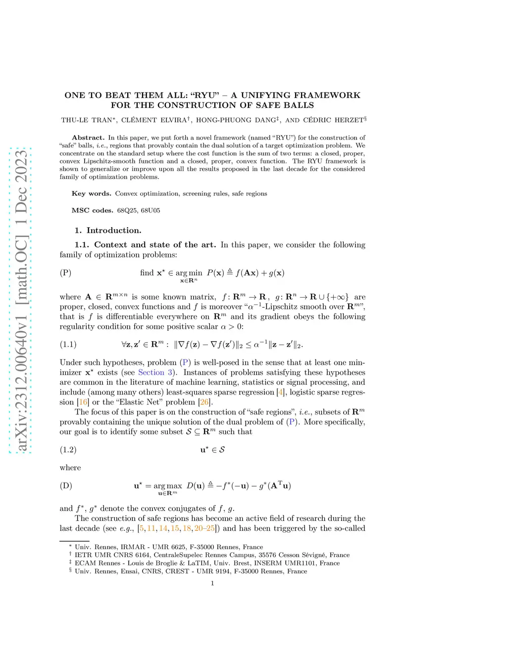 In this paper, we put forth a novel framework (named ``RYU'') for the construction of ``safe'' balls, i.e. regions that provably contain the dual solution of a target optimization problem. We concentrate on the standard setup where the cost function is the sum of two terms: a closed, proper, convex Lipschitz-smooth function and a closed, proper, convex function. The RYU framework is shown to generalize or improve upon all the results proposed in the last decade for the considered family of optimization problems.