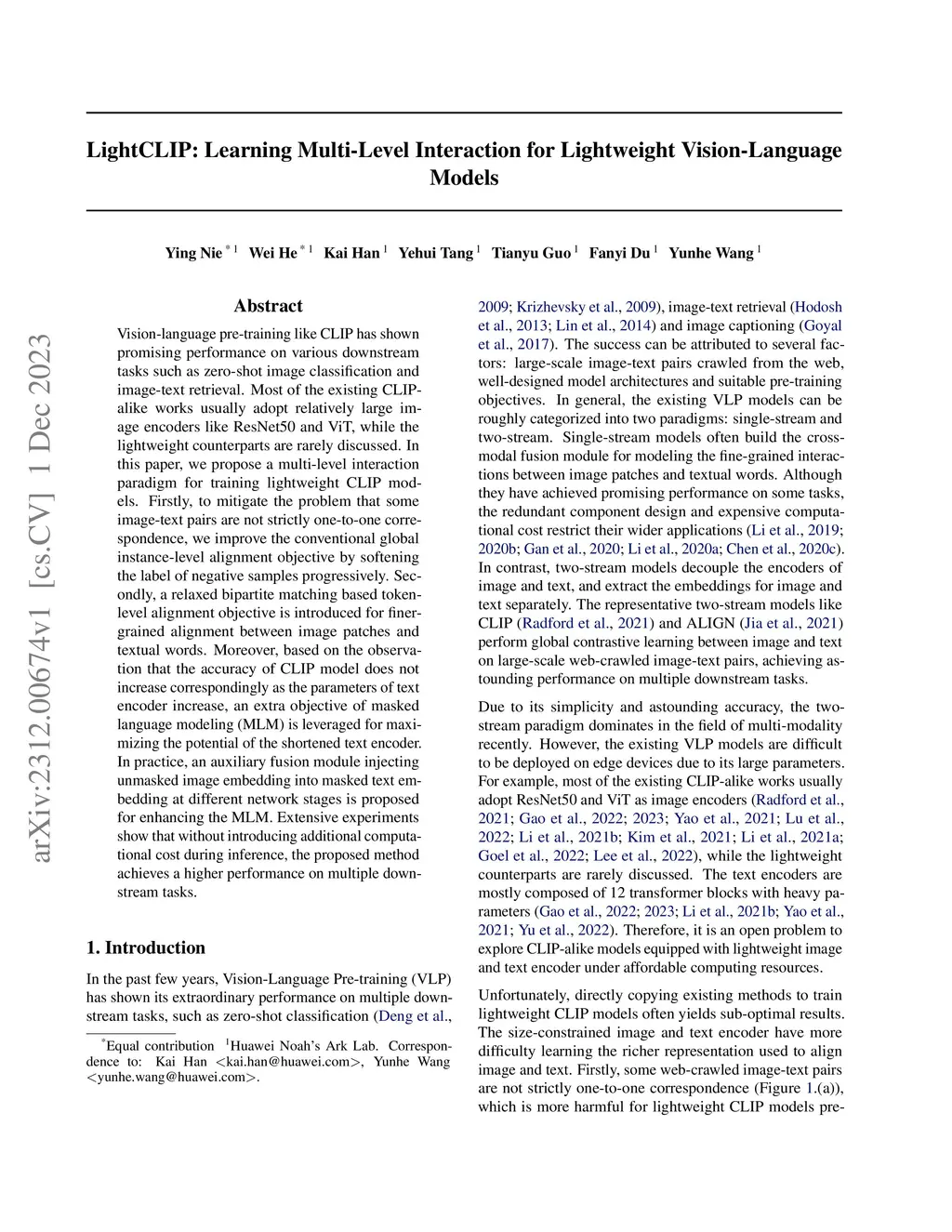 LightCLIP: Learning Multi-Level Interaction for Lightweight