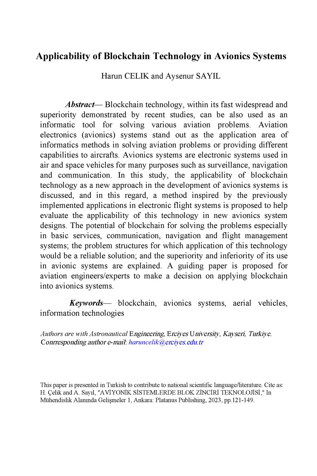 Applicability of Blockchain Technology in Avionics Systems