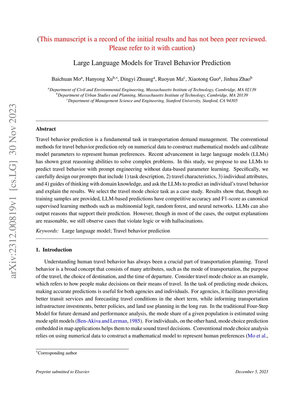 Large Language Models for Travel Behavior Prediction