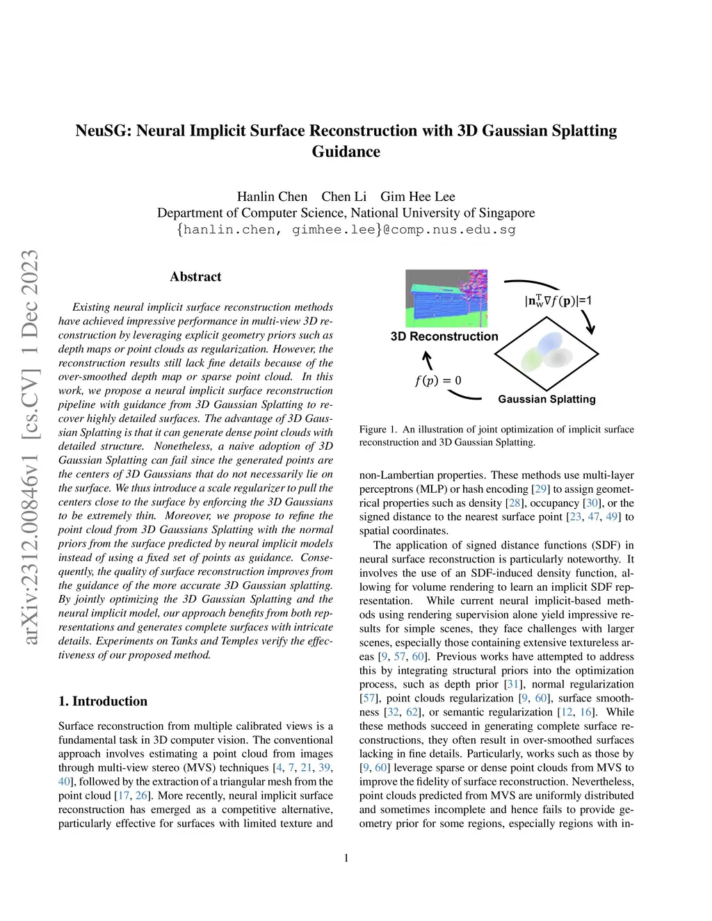 NeuSG: Neural Implicit Surface Reconstruction with 3D Gaussian Splatting Guidance