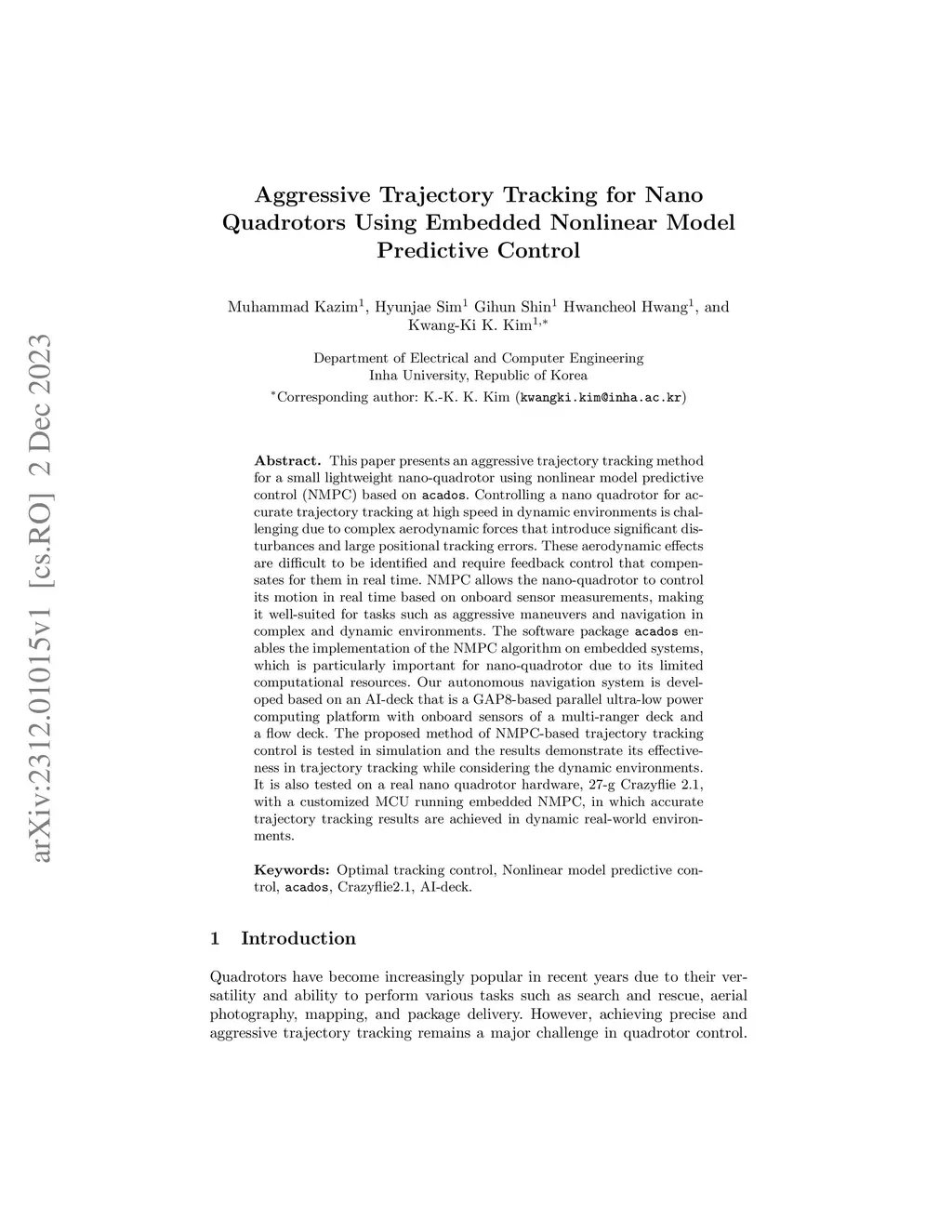 Aggressive Trajectory Tracking for Nano Quadrotors Using Embedded
