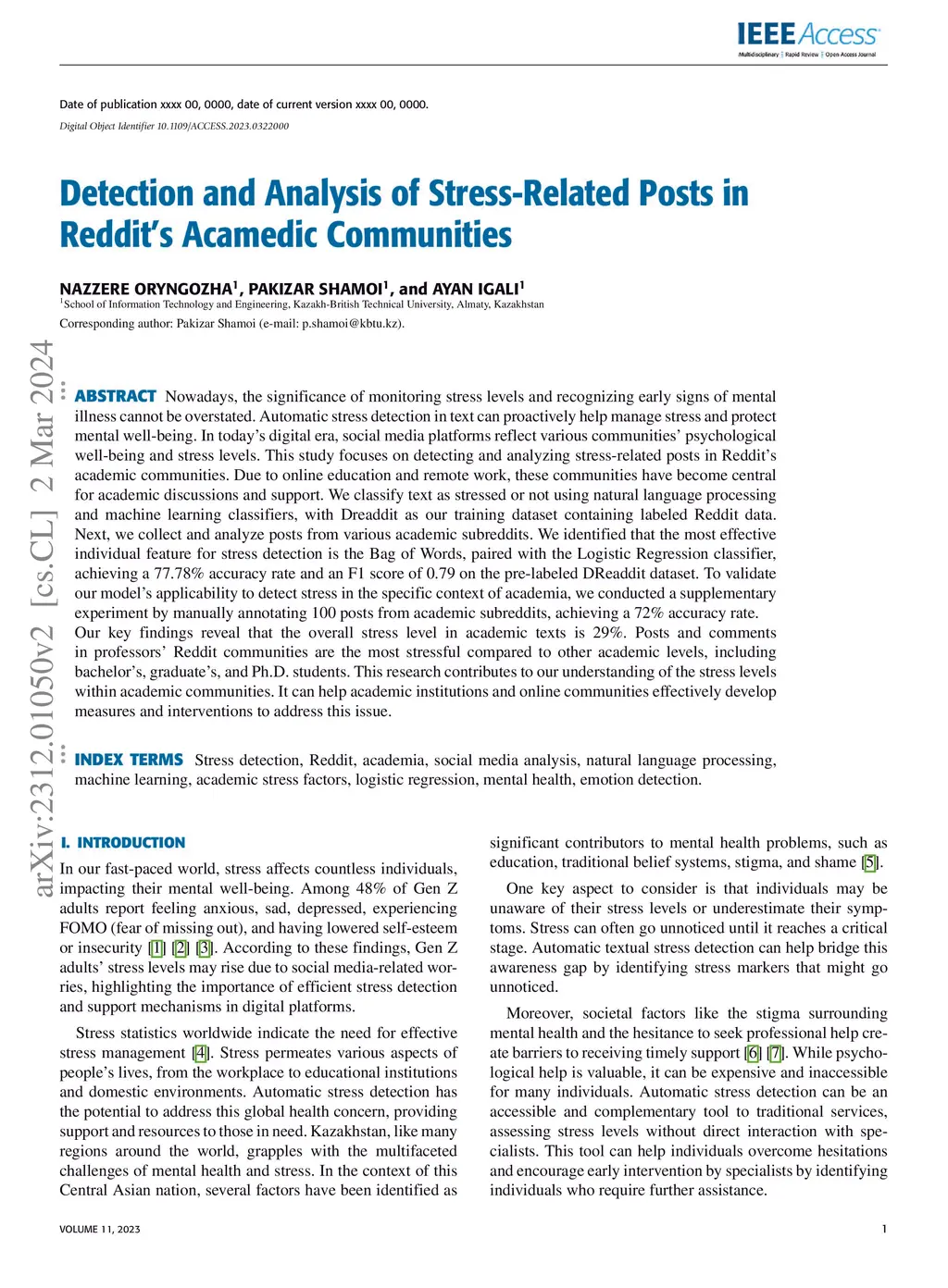 Detection and Analysis of Stress-Related Posts in Reddit Acamedic