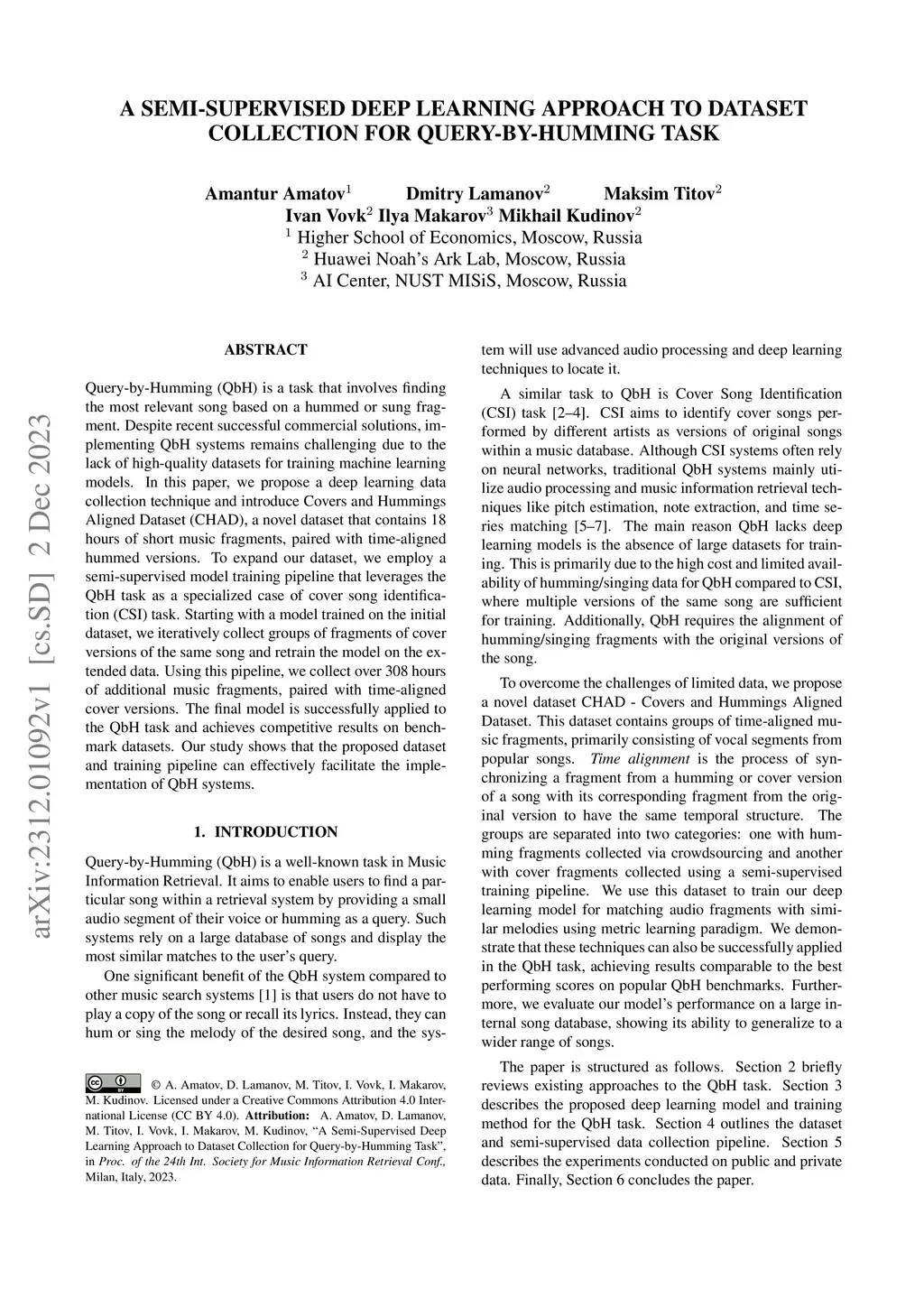 Query-by-Humming (QbH) is a task that involves finding the most relevant song based on a hummed or sung fragment. Despite recent successful commercial solutions, implementing QbH systems remains challenging due to the lack of high-quality datasets for training machine learning models. In this paper, we propose a deep learning data collection technique and introduce Covers and Hummings Aligned Dataset (CHAD), a novel dataset that contains 18 hours of short music fragments, paired with time-aligned hummed versions. To expand our dataset, we employ a semi-supervised model training pipeline that leverages the QbH task as a specialized case of cover song identification (CSI) task. Starting with a model trained on the initial dataset, we iteratively collect groups of fragments of cover versions of the same song and retrain the model on the extended data. Using this pipeline, we collect over 308 hours of additional music fragments, paired with time-aligned cover versions. The final model is successfully applied to the QbH task and achieves competitive results on benchmark datasets. Our study shows that the proposed dataset and training pipeline can effectively facilitate the implementation of QbH systems.