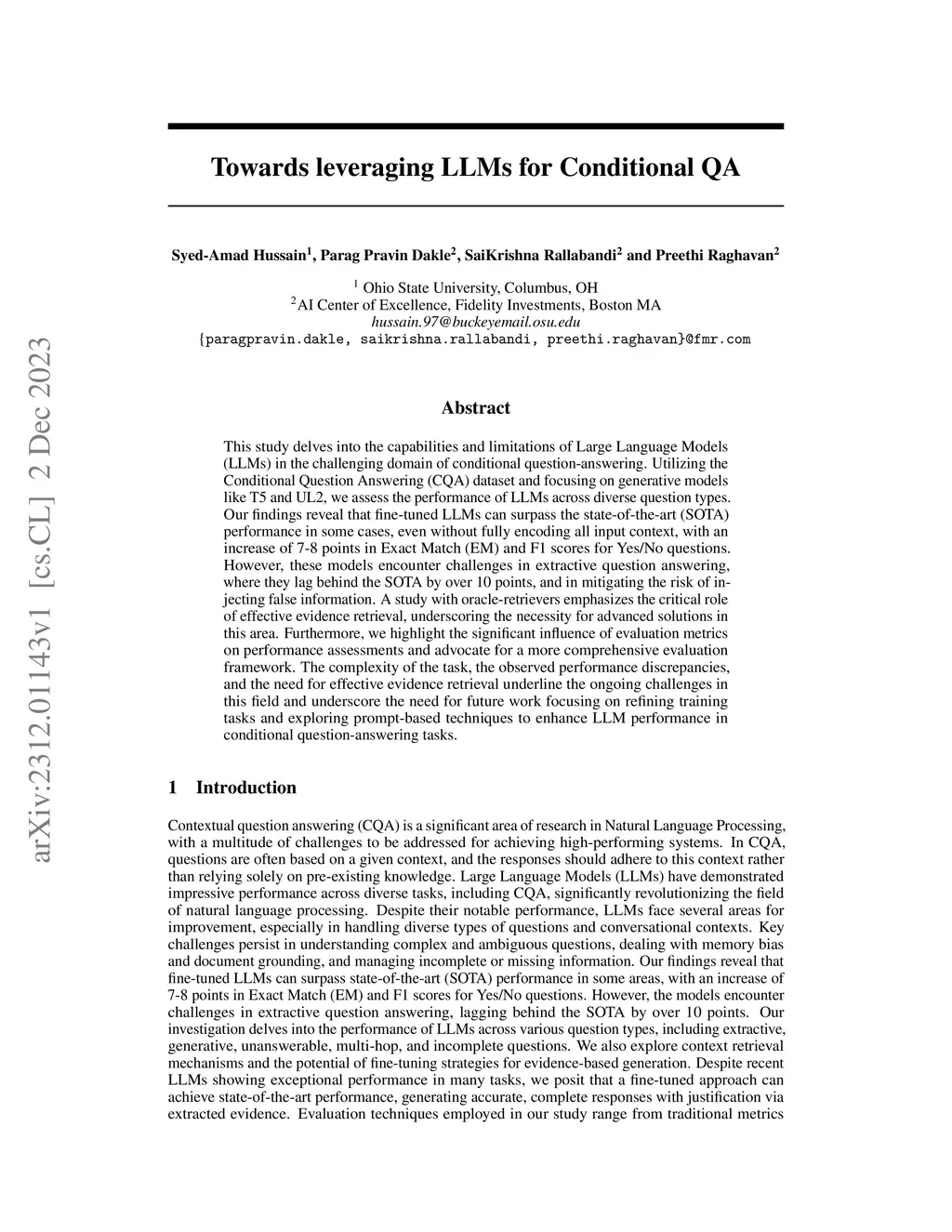 Towards leveraging LLMs for Conditional QA