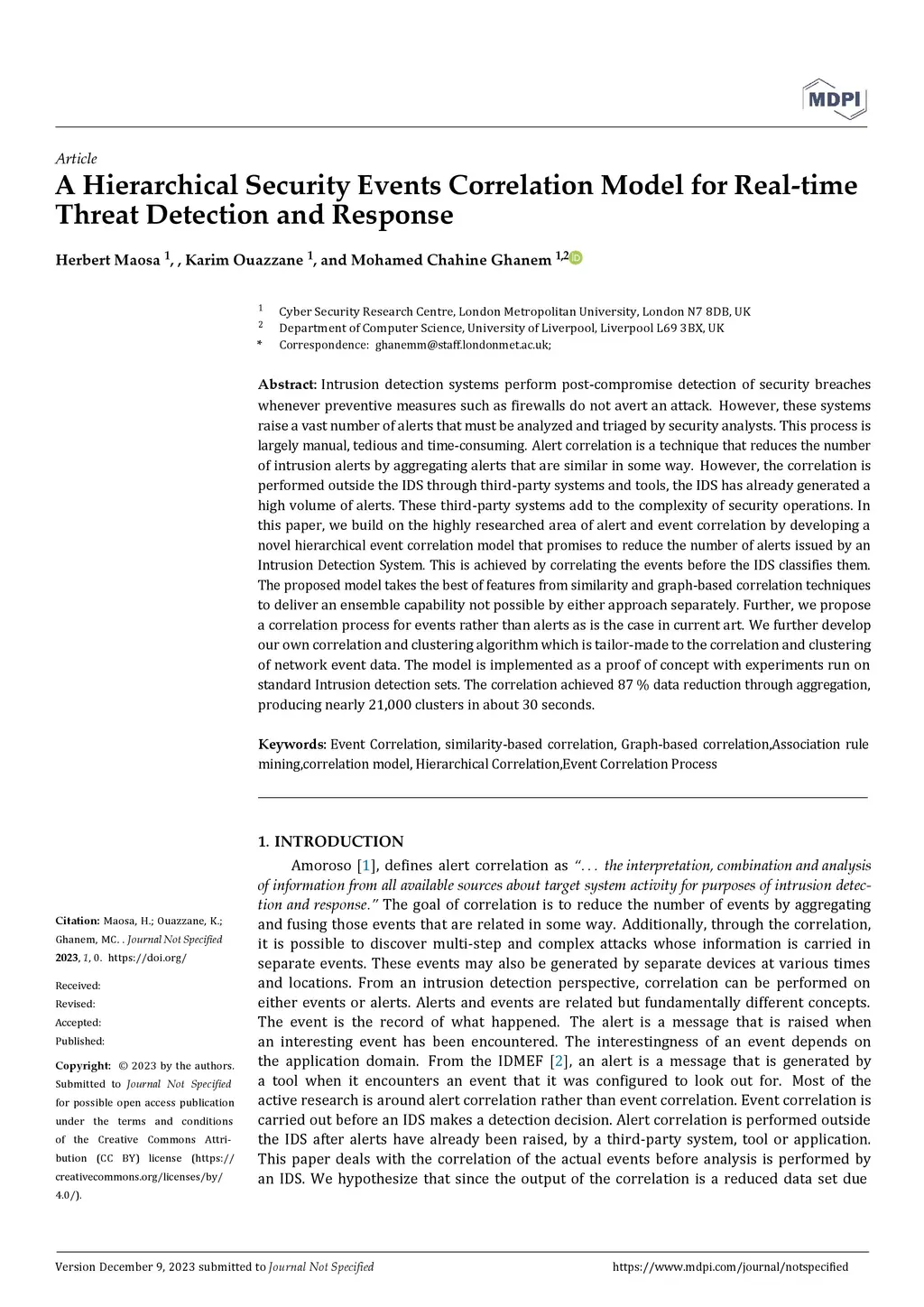 A Hierarchical Security Events Correlation Model for Real-time Cyber Threat Detection and Response