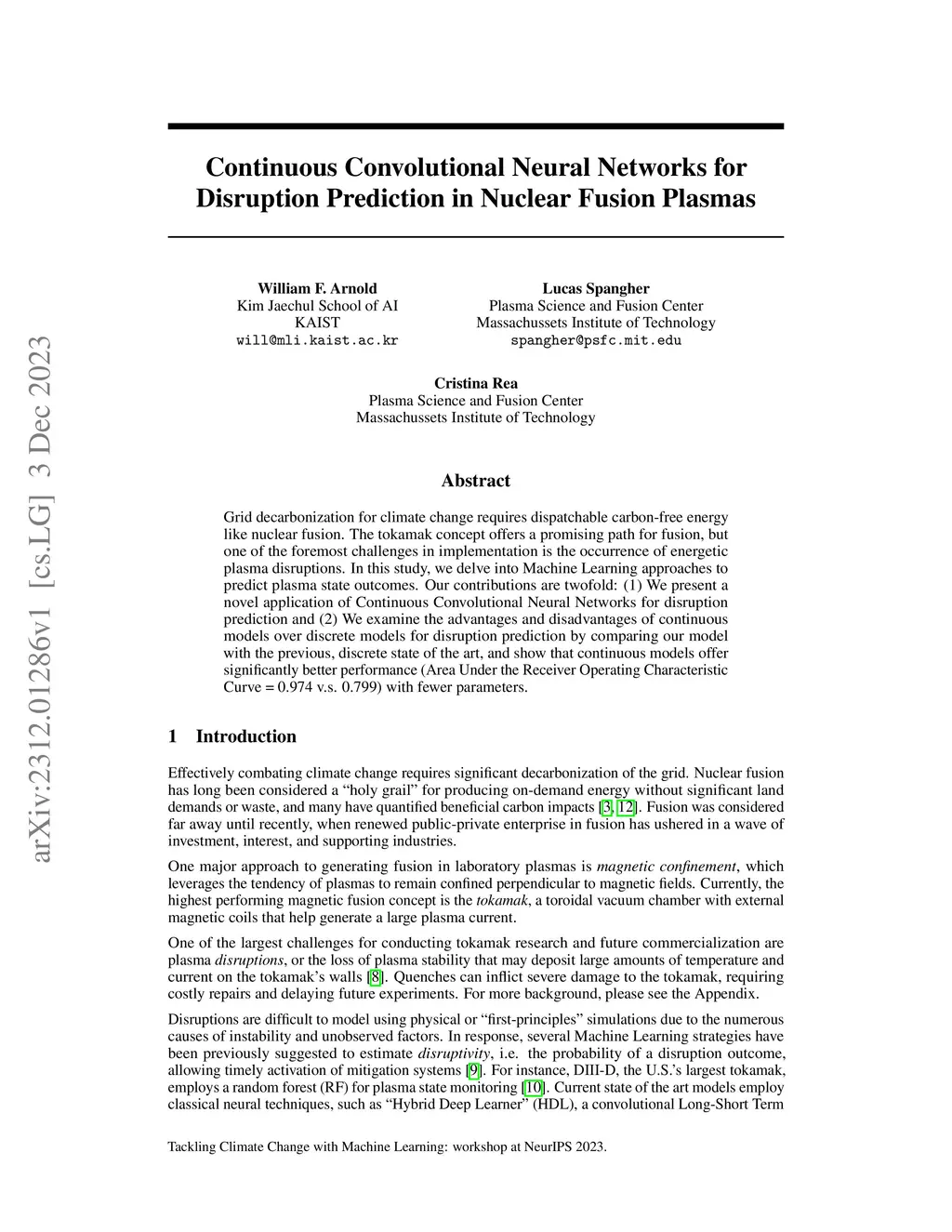 Grid decarbonization for climate change requires dispatchable carbon-free energy like nuclear fusion. The tokamak concept offers a promising path for fusion, but one of the foremost challenges in implementation is the occurrence of energetic plasma disruptions. In this study, we delve into Machine Learning approaches to predict plasma state outcomes. Our contributions are twofold: (1) We present a novel application of Continuous Convolutional Neural Networks for disruption prediction and (2) We examine the advantages and disadvantages of continuous models over discrete models for disruption prediction by comparing our model with the previous, discrete state of the art, and show that continuous models offer significantly better performance (Area Under the Receiver Operating Characteristic Curve = 0.974 v.s. 0.799) with fewer parameters