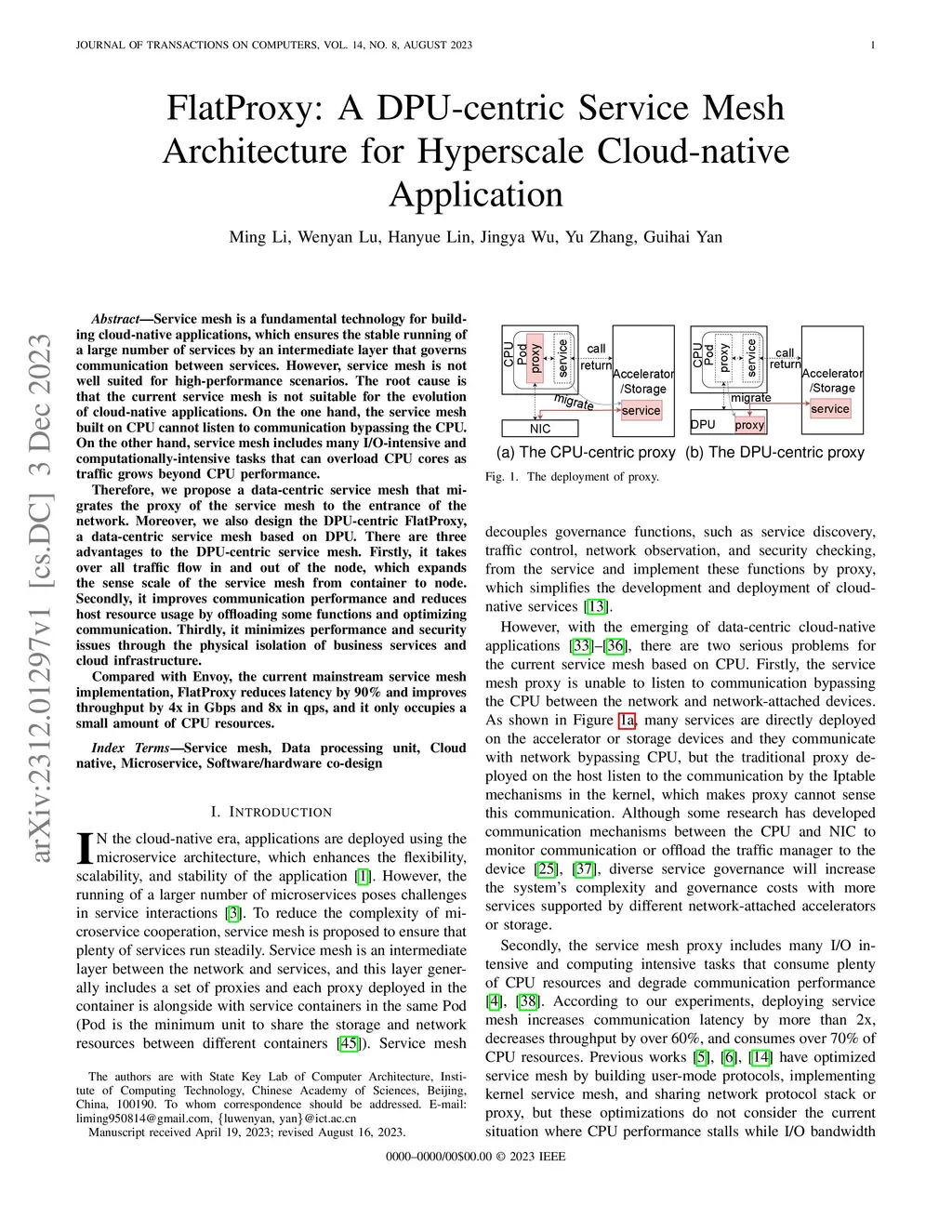 FlatProxy: A DPU-centric Service Mesh Architecture for Hyperscale