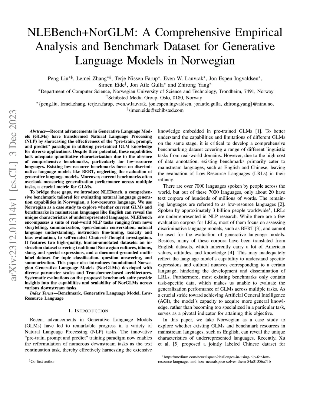NLEBench+NorGLM: A Comprehensive Empirical Analysis and Benchmark