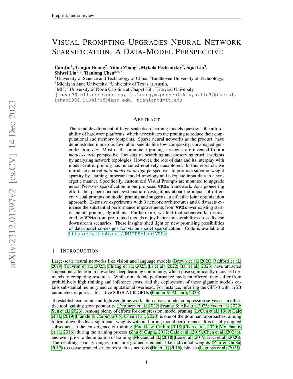 Visual Prompting Upgrades Neural Network Sparsification: A Data-Model