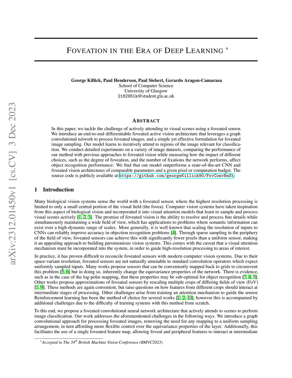 In this paper, we tackle the challenge of actively attending to visual scenes using a foveated sensor. We introduce an end-to-end differentiable foveated active vision architecture that leverages a graph convolutional network to process foveated images, and a simple yet effective formulation for foveated image sampling. Our model learns to iteratively attend to regions of the image relevant for classification. We conduct detailed experiments on a variety of image datasets, comparing the performance of our method with previous approaches to foveated vision while measuring how the impact of different choices, such as the degree of foveation, and the number of fixations the network performs, affect object recognition performance. We find that our model outperforms a state-of-the-art CNN and foveated vision architectures of comparable parameters and a given pixel or computation budget