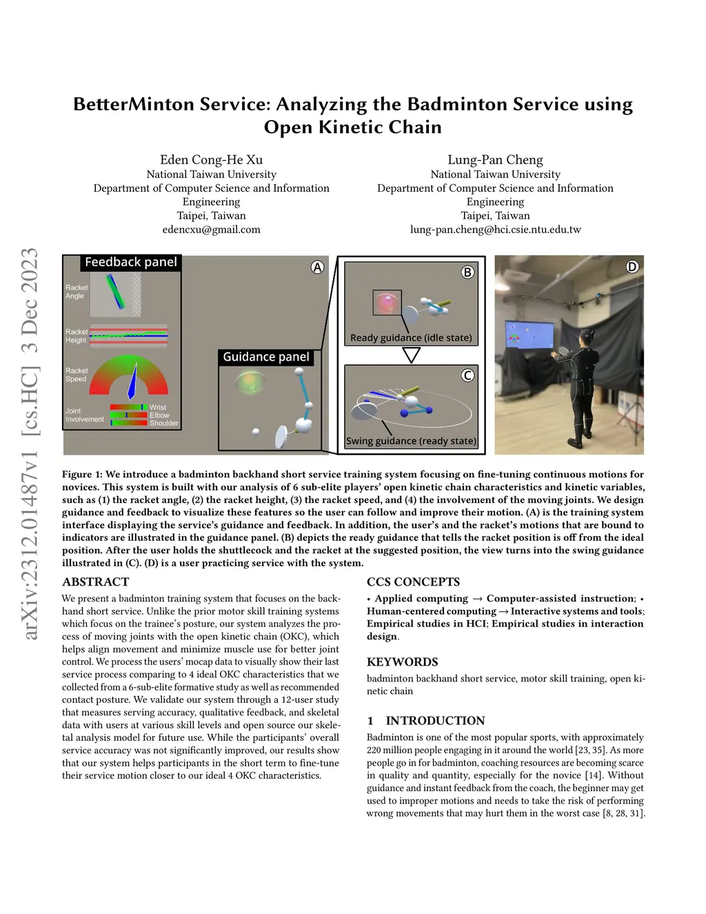BetterMinton Service: Analyzing the Badminton Service using Open Kinetic