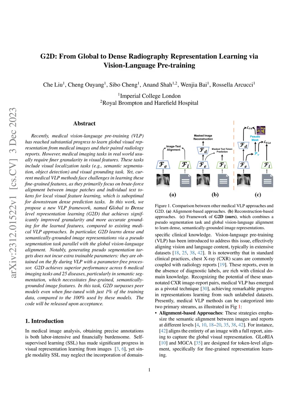 G2D: From Global to Dense Radiography Representation Learning via