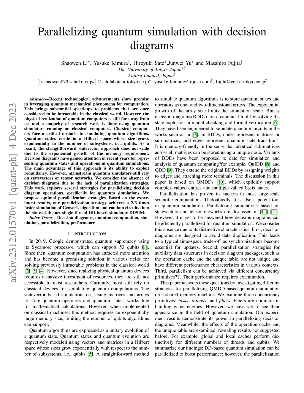 Recent technological advancements show promise in leveraging quantum mechanical phenomena for computation. This brings substantial speed-ups to problems that are once considered to be intractable in the classical world. However, the physical realization of quantum computers is still far away from us, and a majority of research work is done using quantum simulators running on classical computers. Classical computers face a critical obstacle in simulating quantum algorithms. Quantum states reside in a Hilbert space whose size grows exponentially to the number of subsystems, i.e., qubits. As a result, the straightforward statevector approach does not scale due to the exponential growth of the memory requirement. Decision diagrams have gained attention in recent years for representing quantum states and operations in quantum simulations. The main advantage of this approach is its ability to exploit redundancy. However, mainstream quantum simulators still rely on statevectors or tensor networks. We consider the absence of decision diagrams due to the lack of parallelization strategies. This work explores several strategies for parallelizing decision diagram operations, specifically for quantum simulations. We propose optimal parallelization strategies. Based on the experiment results, our parallelization strategy achieves a 2-3 times faster simulation of Grover's algorithm and random circuits than the state-of-the-art single-thread DD-based simulator DDSIM.