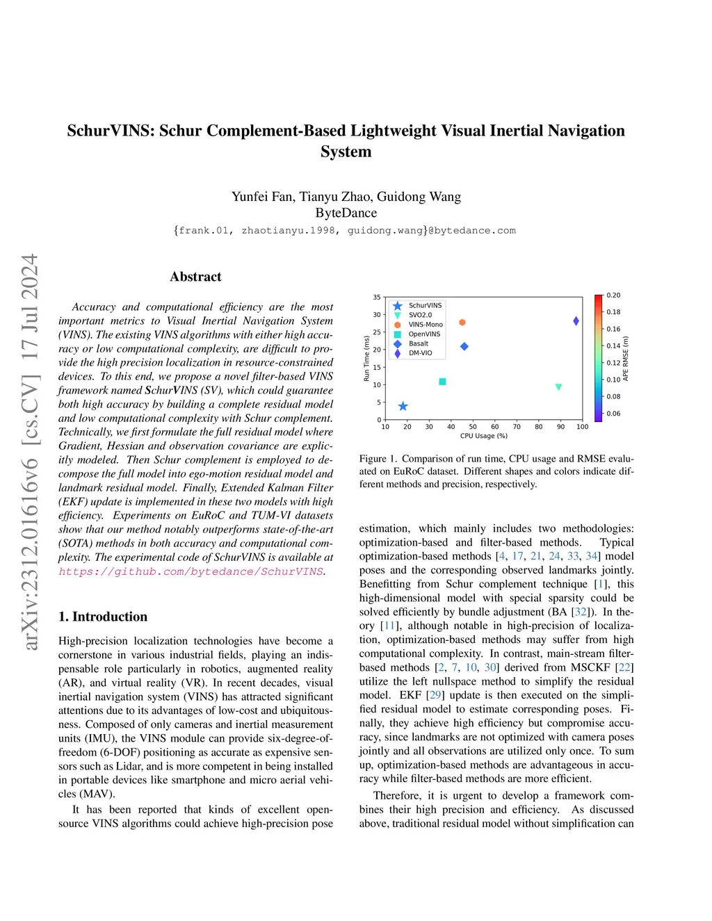 SchurVINS: Schur Complement-Based Lightweight Visual Inertial Navigation
