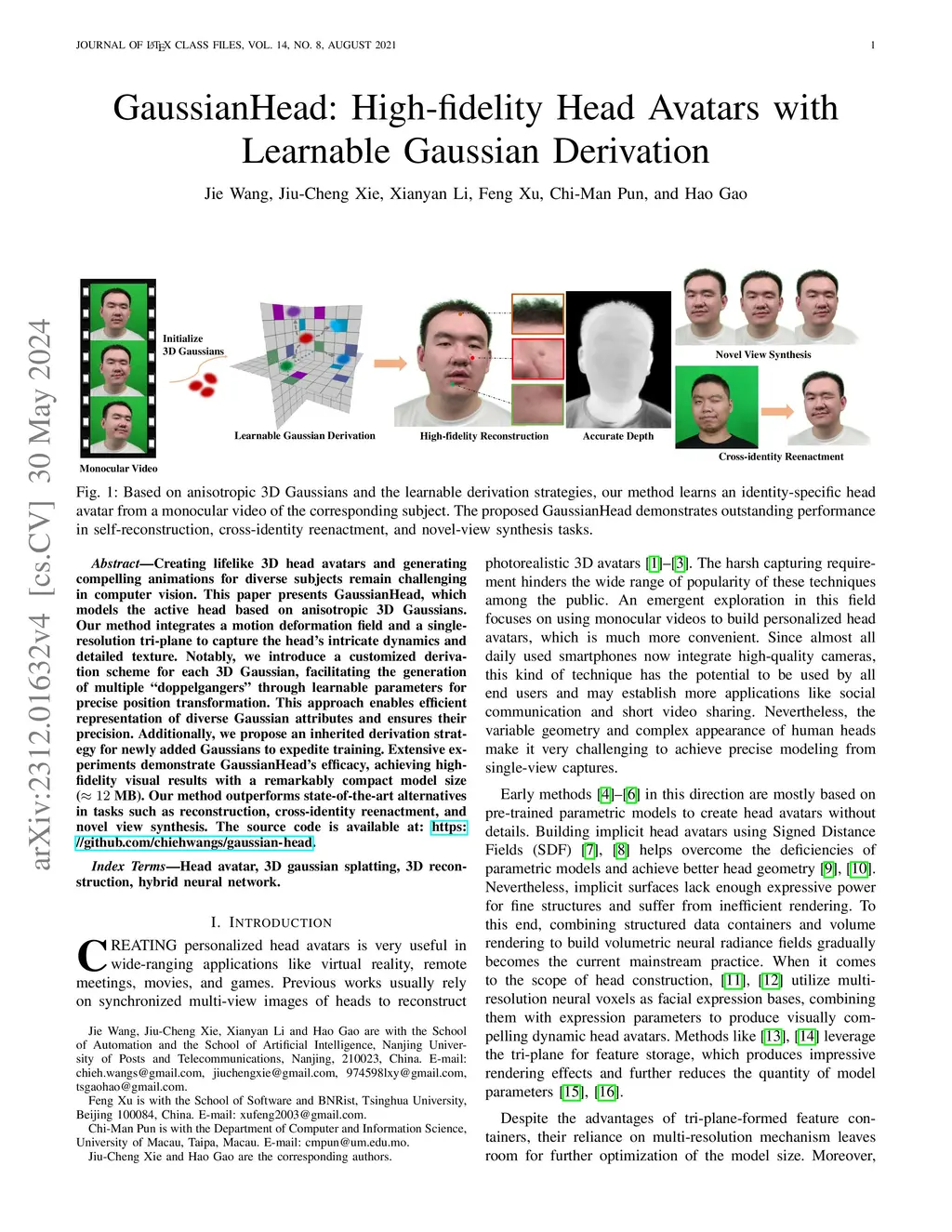 GaussianHead: High-fidelity Head Avatars with Learnable Gaussian Derivation