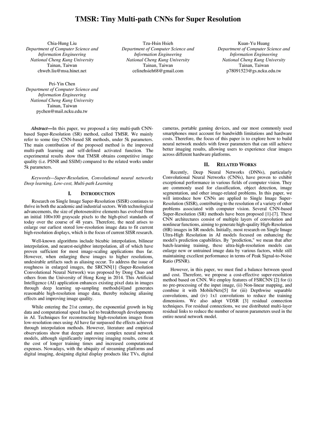 TMSR: Tiny Multi-path CNNs for Super Resolution