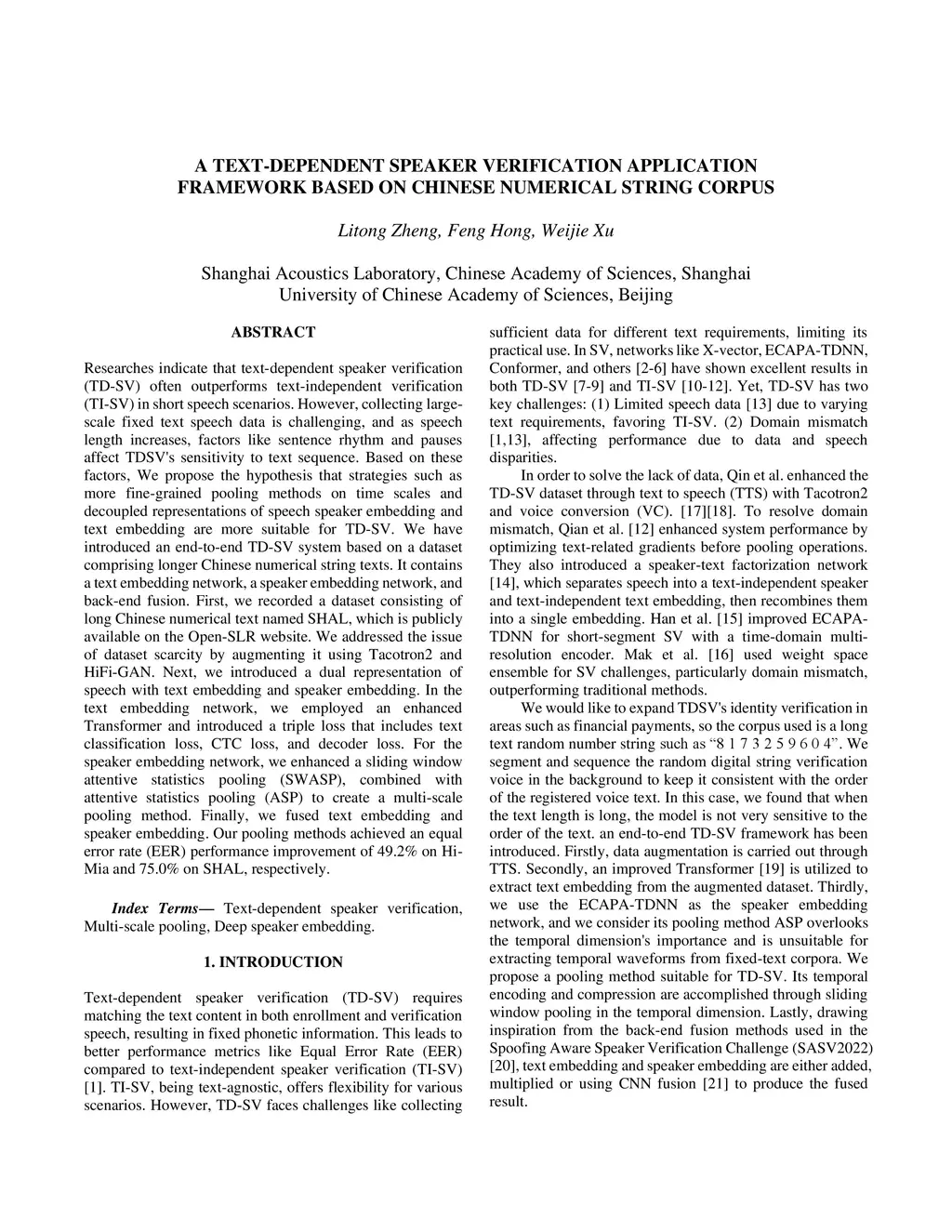 Researches indicate that text-dependent speaker verification (TD-SV) often outperforms text-independent verification (TI-SV) in short speech scenarios. However, collecting large-scale fixed text speech data is challenging, and as speech length increases, factors like sentence rhythm and pauses affect TDSV's sensitivity to text sequence. Based on these factors, We propose the hypothesis that strategies such as more fine-grained pooling methods on time scales and decoupled representations of speech speaker embedding and text embedding are more suitable for TD-SV. We have introduced an end-to-end TD-SV system based on a dataset comprising longer Chinese numerical string texts. It contains a text embedding network, a speaker embedding network, and back-end fusion. First, we recorded a dataset consisting of long Chinese numerical text named SHAL, which is publicly available on the Open-SLR website. We addressed the issue of dataset scarcity by augmenting it using Tacotron2 and HiFi-GAN. Next, we introduced a dual representation of speech with text embedding and speaker embedding. In the text embedding network, we employed an enhanced Transformer and introduced a triple loss that includes text classification loss, CTC loss, and decoder loss. For the speaker embedding network, we enhanced a sliding window attentive statistics pooling (SWASP), combined with attentive statistics pooling (ASP) to create a multi-scale pooling method. Finally, we fused text embedding and speaker embedding. Our pooling methods achieved an equal error rate (EER) performance improvement of 49.2% on Hi-Mia and 75.0% on SHAL, respectively.