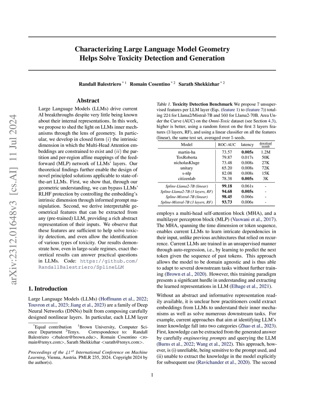 Characterizing Large Language Model Geometry Helps Solve Toxicity